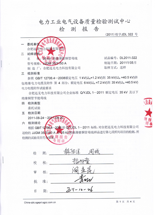 35KV/3150A绝缘薄壁铜管母线检测报告